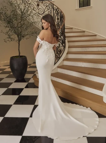 This stunning gown has a matching detachable train, sold separately and the beaded 3-D floral straps can me worn off the shoulder or on top of the shoulder. This is where fashion meets versatility with so many different options, you can change up your look all night long with a snap of a finger.